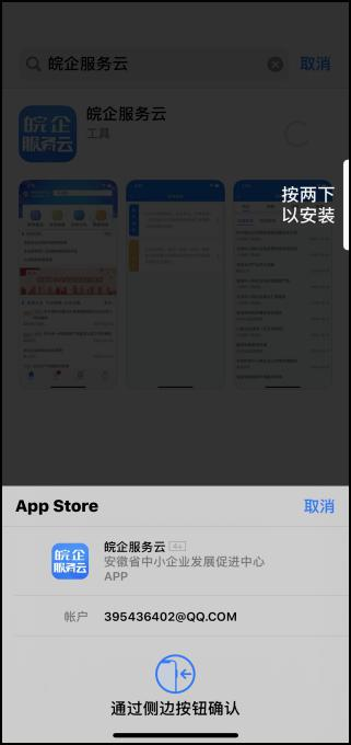 2、蘋果手機(jī)用戶在 APP Store 里搜索“皖企服務(wù)云” 并點(diǎn)擊“獲取”下載安裝;