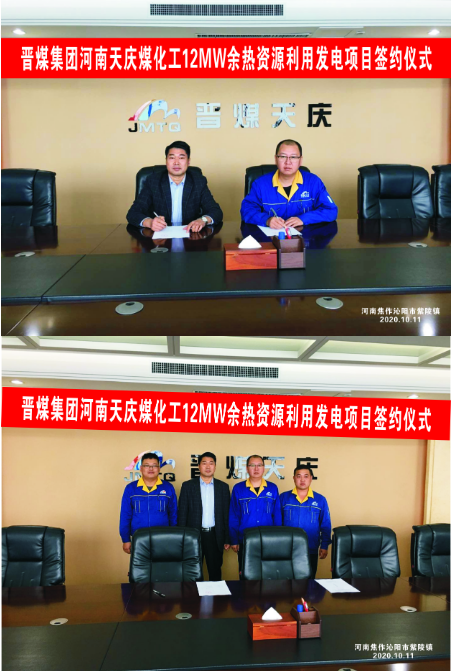 熱烈祝賀公司簽訂中國五百強(qiáng)國企晉煤集團(tuán)天慶煤化工 余熱資源利用12MW發(fā)電項(xiàng)目