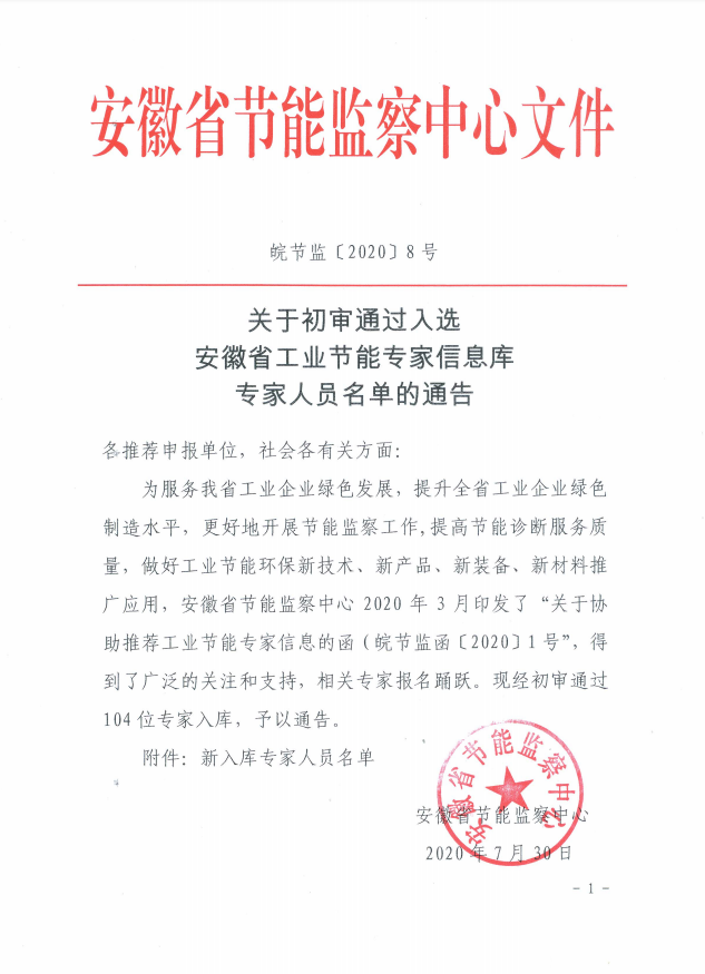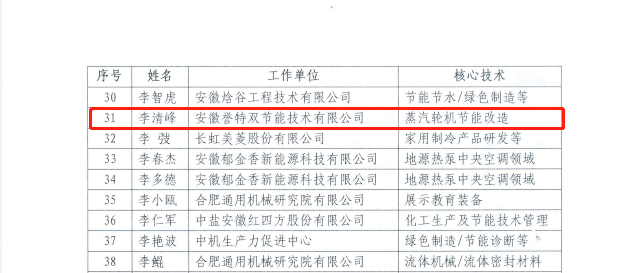 熱烈祝賀我公司總經(jīng)理袁克、副總經(jīng)理李清峰等同志成功入選安徽省工業(yè)節(jié)能專家信息庫
