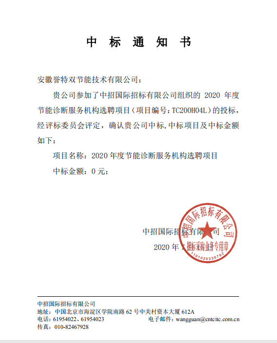 熱烈祝賀公司中標(biāo)工信部2020年度國家節(jié)能診斷服務(wù)機(jī)構(gòu)選聘項(xiàng)目