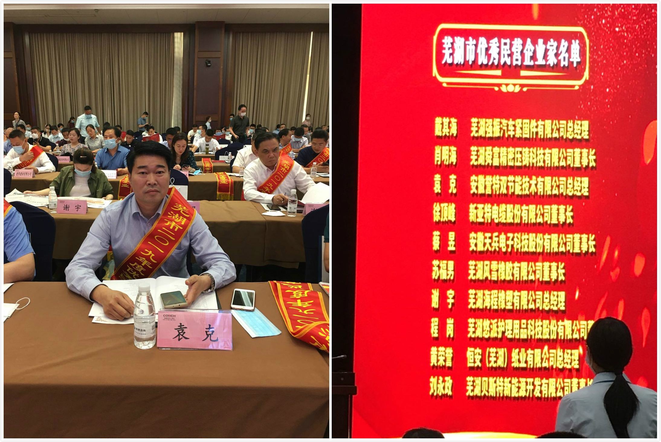 熱烈祝賀公司總經(jīng)理獲評(píng)2019年蕪湖市優(yōu)秀民營(yíng)企業(yè)家榮譽(yù)稱(chēng)號(hào)
