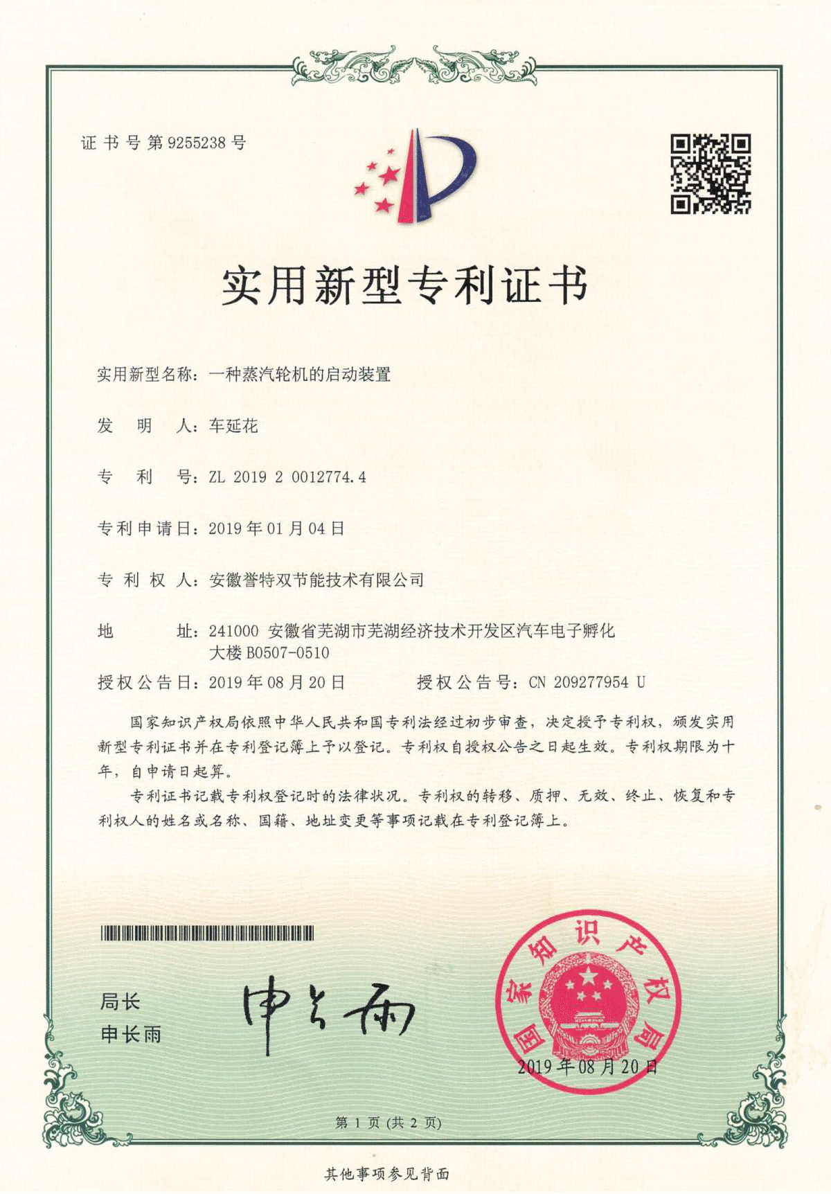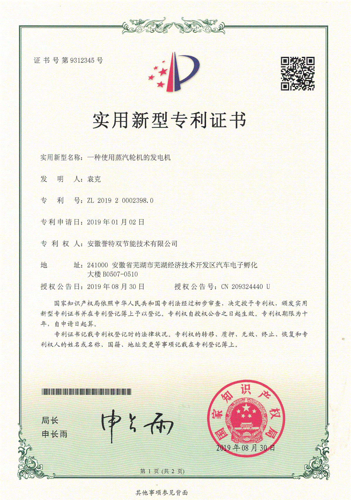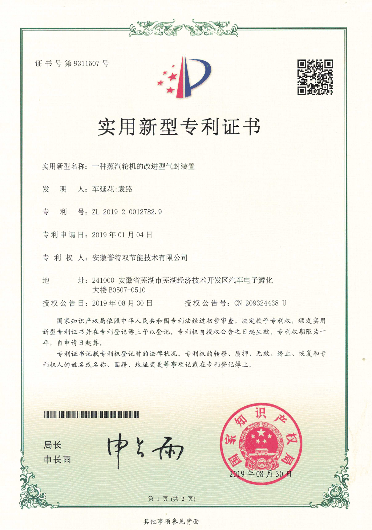 近日,我公司申報(bào)的“一種改進(jìn)型蒸汽輪機(jī)的通流結(jié)構(gòu)”、“一種蒸汽輪機(jī)的增壓裝置”、“一種蒸汽輪機(jī)的改進(jìn)型氣封裝置”等10項(xiàng)實(shí)用新型專利通過國家知識產(chǎn)權(quán)局審核,并順利獲取實(shí)用新型專利證書。