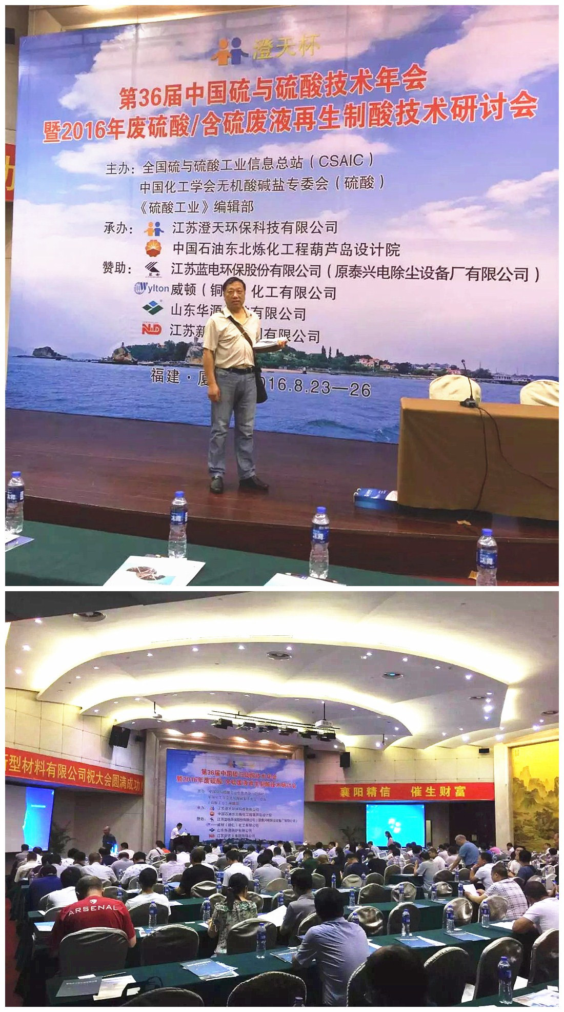 近日,我司受邀參加第三十六屆中國硫與硫酸技術(shù)年會暨2016年廢硫酸/含硫廢液再生制酸技術(shù)研討會,本會議圍繞政策市場、清潔生產(chǎn)、節(jié)能節(jié)電、污染物減排、危廢處置、廢酸再生、砷回收等行業(yè)熱點(diǎn)難點(diǎn)問題展開研究。