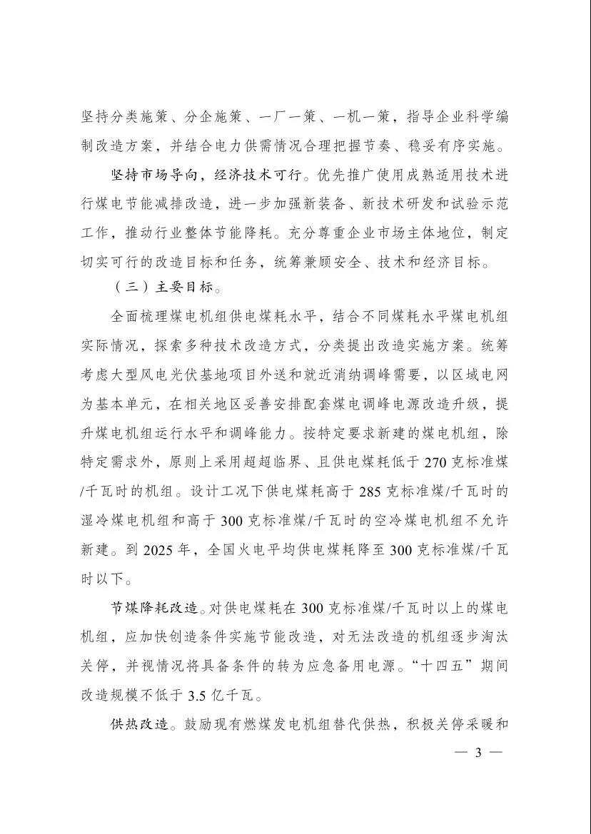 到2025年,全國火電平均供電煤耗降至300克標(biāo)準(zhǔn)煤/千瓦時以下。對供電煤耗在300克標(biāo)準(zhǔn)煤/千瓦時以上的煤電機組,應(yīng)加快創(chuàng)造條件實施節(jié)能改造,對無法改造的機組逐步淘汰關(guān)停,并視情況將具備條件的轉(zhuǎn)為應(yīng)急備用電源。“十四五”期間改造規(guī)模不低于3.5億千瓦。