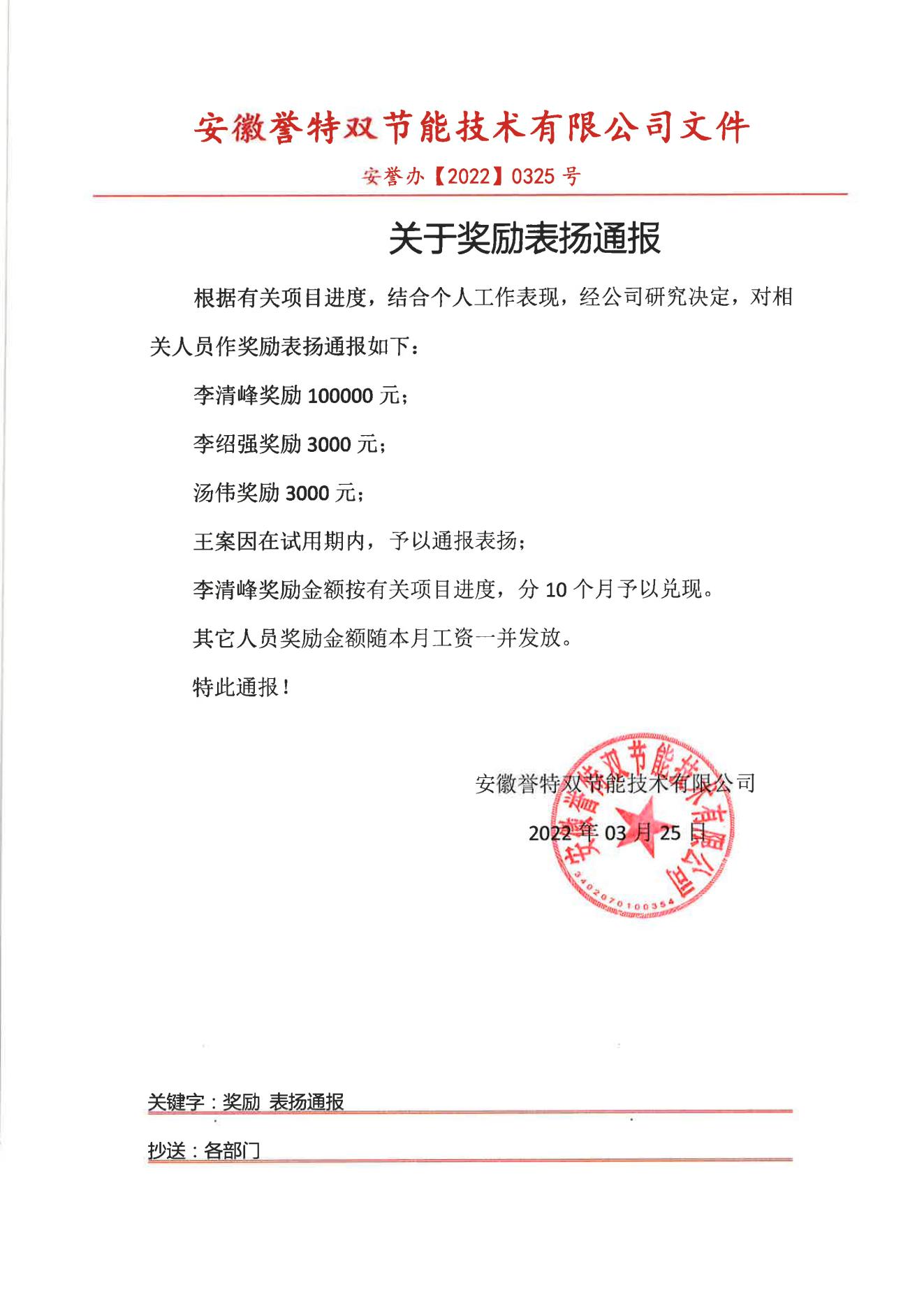 上圖為2022年3月25日臨時(shí)獎(jiǎng)勵(lì)通報(bào)