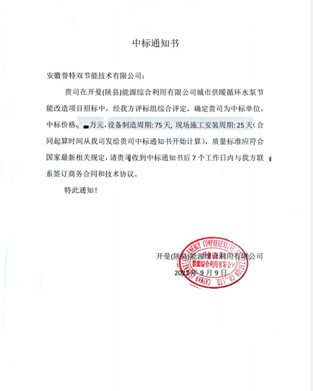 近日,公司中標(biāo)中國(guó)五百?gòu)?qiáng)企業(yè)杭州錦江集團(tuán)開曼能源3.15MW熱網(wǎng)循環(huán)泵蒸汽拖動(dòng)節(jié)能改造項(xiàng)目。